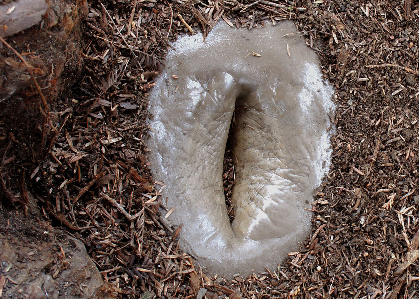 A pair of foot arches molded in bronze. She embedded the sculpture into the ground of the park. The arches are a metaphor for 'unconscious territory’ that grows irrespective of our intentions.The weight of the sculpture creates a firm stance that shows how all things have gravity.